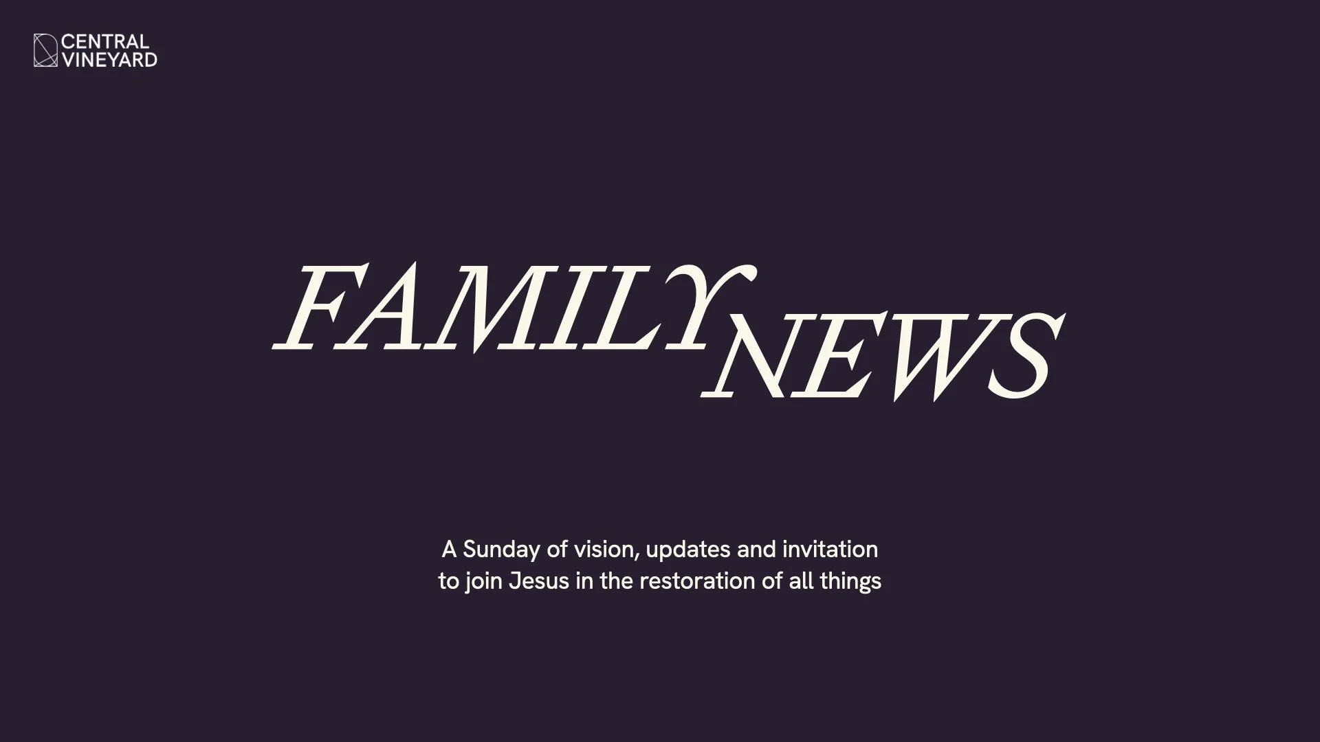 Join us for Family News: A Sunday of vision, updates and inviations to join Jesus in the restoration of all things.